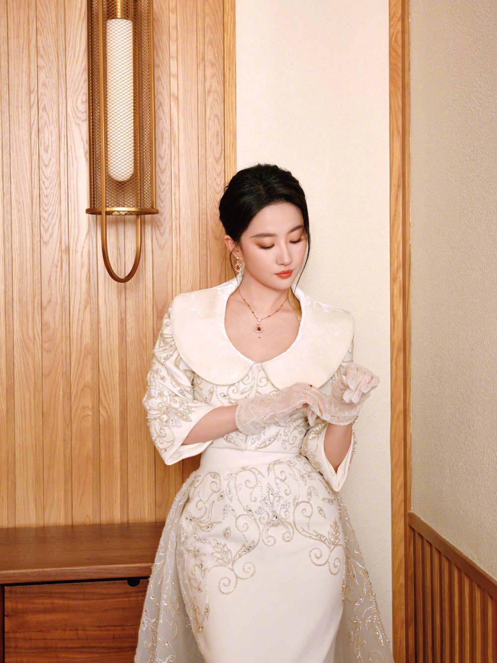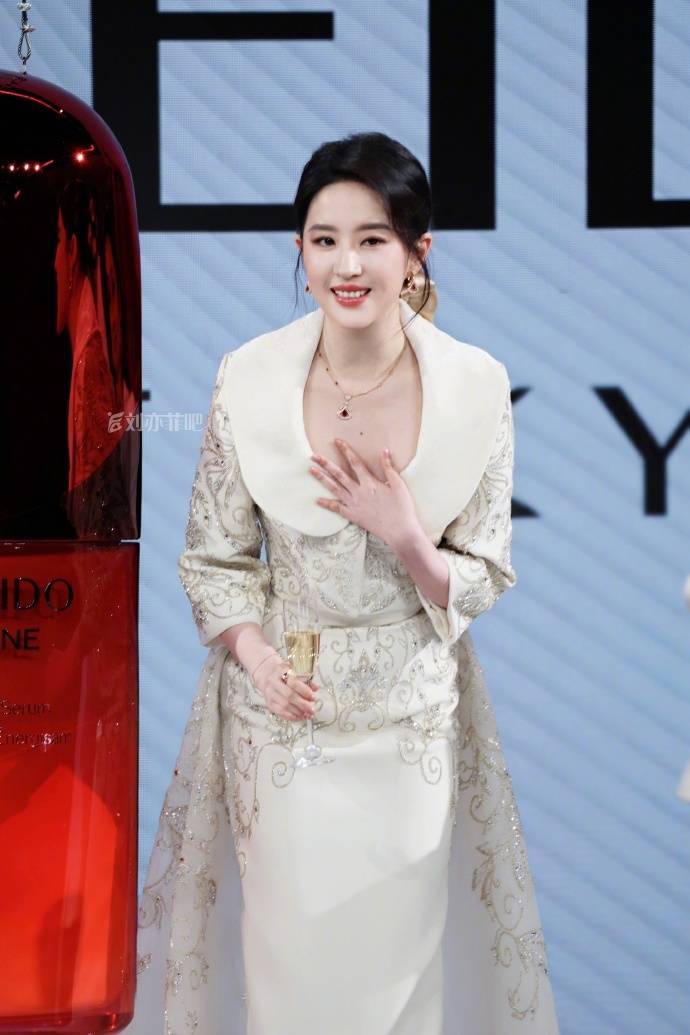 最近刘亦菲一组刺绣礼服造型引发热议,精修图里她身着白色刺绣长裙仙气飘飘,裙摆上的金线刺绣在柔光下宛如星河流动,肩颈线条被勾勒得纤细流畅,标准的鹅蛋脸配上淡雅妆容,活脱脱从古典画里走出来的仕女。可网友晒出的现场未修图却让人大跌眼镜——同样的礼服穿在身上,腰部明显勒出赘肉,肩背线条也显得有些厚实,连工作室精心营造的“天鹅颈”都变成了略带圆润的斜方肌。这种强烈反差让不少人感慨:精修图和生图之间,隔着不止一个美颜滤镜的距离。